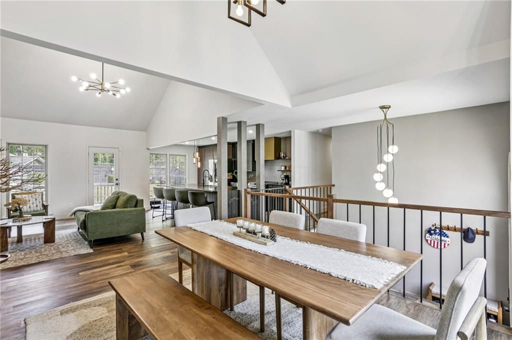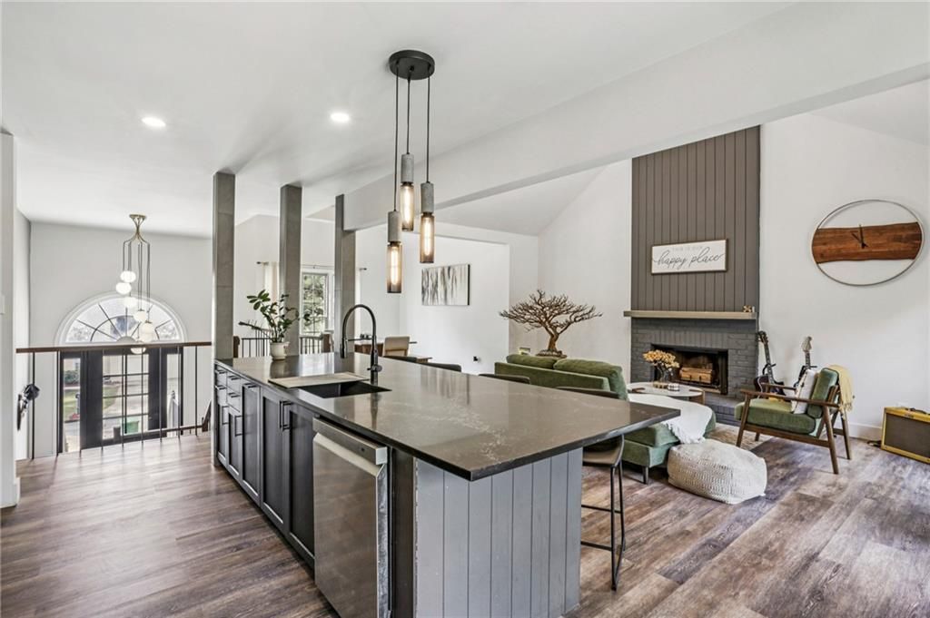 As soon as you step inside this beautifully updated home, you will be wowed by the open floor plan and abundance of natural light. This impeccably maintained split-level offers the perfect blend of style and comfort, ideal for entertaining. The sleek, modern chef's kitchen is the focal point, boasting granite countertops, stainless steel appliances, ample storage, an island and an eat-in nook overlooking the beautiful backyard. The fireside family room that flows seamlessly to the dining area features a fireplace with a stunning facade stemming to the ceiling. Also on the main level, you will find a generously sized primary suite with a recent bathroom refresh as well as two additional bedrooms and a secondary newly refreshed full bath. Venture down to the lower level where you will find an additional living space currently used as a theater room, a separate bedroom, a third room that would make a great gym and a newly updated full bath. Outside, the sprawling backyard is private and fully fenced-in, perfect for dogs and kids! Bonus: no carpet in the home! Neighborhood features a pool and a lake.